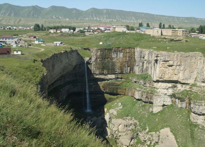 Со смотровой площадки, помимо водопадов, отлично видны остатки старинной крепости, которая была возведена русскими войсками для расквартирования военного гарнизона после победы над имамом Шамилем. Часть ее помещений и сейчас занимают российские пограничники.