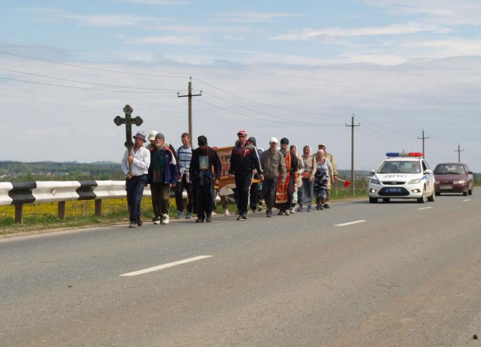 В районе городка Чернушка встречаю крестный ход. Хорошая примета.