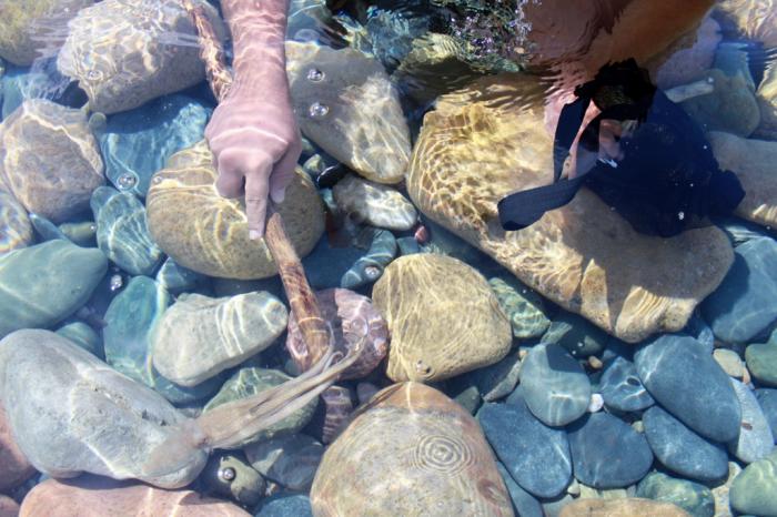 Если не бояться легкого бездорожья, то можно добраться до практически необитаемых пляжей с кучей живности в воде, осьминогами. Пока я в море выковыривал из под камня здорового осьминога, сыну к ноге «прилип» малыш с ладошку. Во визгу было  Хочу на этот отпуск взять пневматическое ружье, есть что добыть.