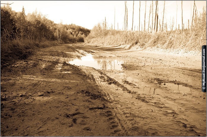 Сделали остановку, пытались спросить грибников на ниве о дороге в рудникам, никто не мог дать точный ответ. Решено ехать прямо, пока не упремся куда-нибудь и найти все-таки выход из этой дороги, ведь на нее мы попали через заросшую и заброшенную дорогу деревни. Игорь поехал первым, чтобы если что, мне его вытаскивать было проще.
