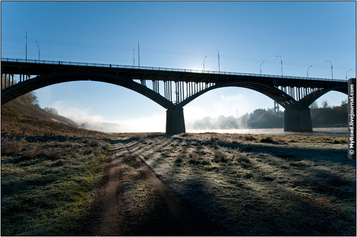 Назначили точку сбора, все прибыли без опозданий. Сразу по машинам и в Старицу к монастырю. Первым делом хорошо укутаться и бегом фотографировать туман и окружающую природу. В пути термометр автомобиля на бетоннке показывал -4 градуса по цельсию. Брррр… На траве роса, вокруг тишина, красота неописуемая и только через минут тридцать группа джипперов ринулась куда-то в сторону леса принимать лечебные грязи Тверской области.
