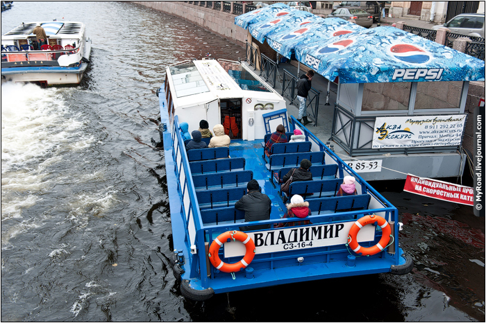 Водные трамвайчики пустые, туристов раз два и обчелся.
