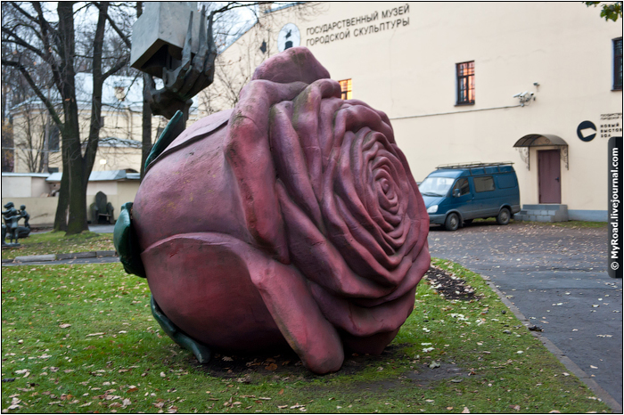 На выходе из метро "Площадь Александра Невского" зашли на территорию музея городской скульптуры. Цветок высотой не менее двух метров, снят почти в темноте с задранным ISO. А потом пошли в гостевой дом на улицу Слободскую отдыхать и набираться сил для нового, запланированного маршрута на завтра.