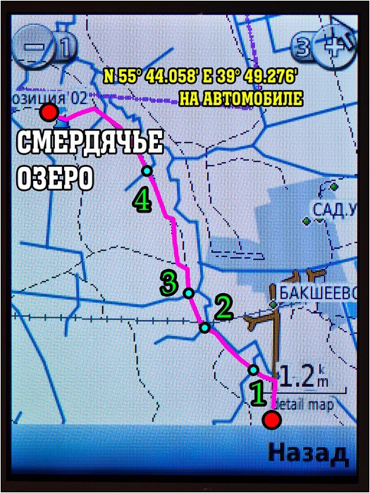 Утром субботы я был уже себя дома, в поселке, где живут родители. Плотный завтрак вкуснейшей выпечкой мамы, бутерброды, вода с собой и в путь. Одометр на ноль, навигатор, рация и телефон с записью трека. Как потом выяснилось, трек этот никуда нельзя выгрузить и можно лишь тупо просмотреть его на мониторе мобильного телефона. Ну и нафига мне такой трек? Пришлось для отчета снять на фотоаппарат трек, чтобы показать вам.