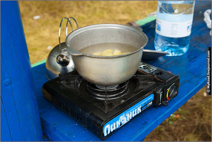 А вот и Игорь. Игорь тоже занялся приготовлением, только все вышло намного быстрей, т.к. у Игоря была походная плитка.