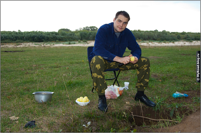 Хочется кушать, принято решение выехать на берег Оки. Ехать нужно было по бездорожью, немного экстремально. Жаль фото не делал. был за рулем.