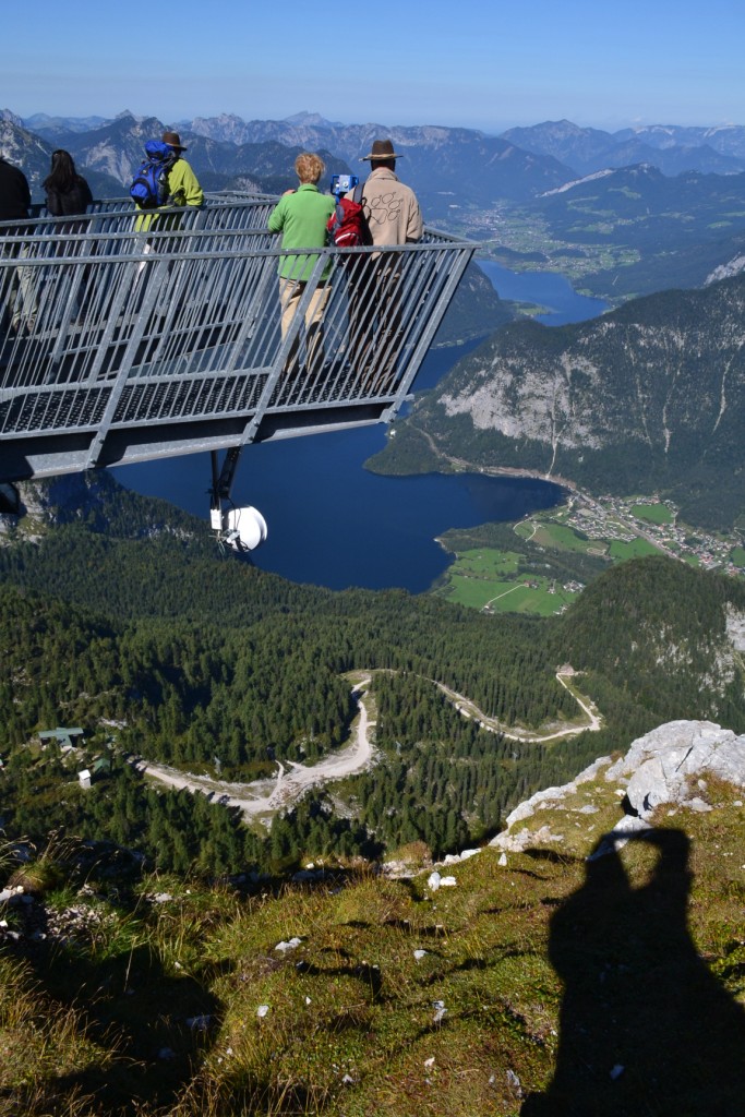 Располагается она на высоте 2100 м над уровнем моря. Название свое получила за форму: на пяти «пальцах»-дорожках народ зависает над пропастью и вовсю фотографируется на фоне заснеженных вершин и раскинувшегося внизу Хальштатта— города и озера. Рядом совершенно беззвучно пролетают местные черные вороны и парапланеристы. На вершину ведет канатная дорога, состоящая из двух участков. На одном кабина предательски вздрагивает и резко ухает вниз. Все радостны и доброжелательны, включая собак и «водилу».