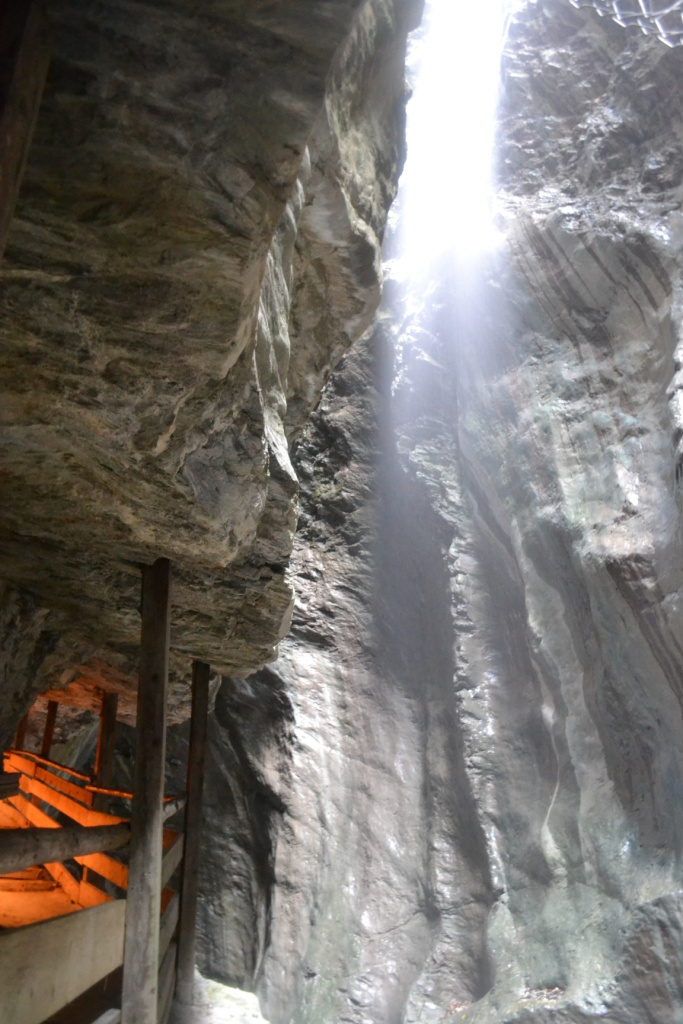 Более ста лет назад лихтенштейнские князья благоустроили это ущелье для прогулок местных и не только жителей. Со временем возможность прогуляться по деревянным мосткам над бурливым потоком и сквозь пробитые в скалах туннели стала привлекать все больше и больше туристов. С каждой сотней шагов ущелье становится все выше и уже, а зажатая между скалами вода с легкостью несет бревна, пока их не остановят каменные заторы. Нельзя сказать из-за шедшего в этот день дождя, как это ущелье выглядит в погожий день, но вечером в сильный дождь вода обрушивалась с отвесных стен множеством больших и маленьких ручейков, водопадов и просто капель воды.