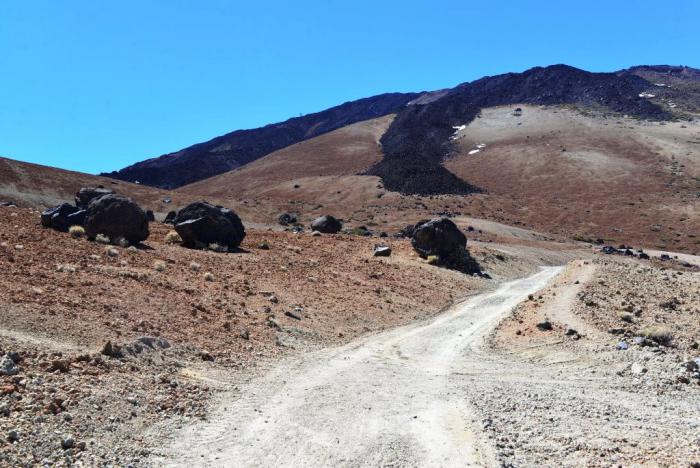 За долиной с «яйцами» тропы расходятся: прямо и вверх – к приюту и Тейде, а нам – налево, к вершине Монтана Бланко: