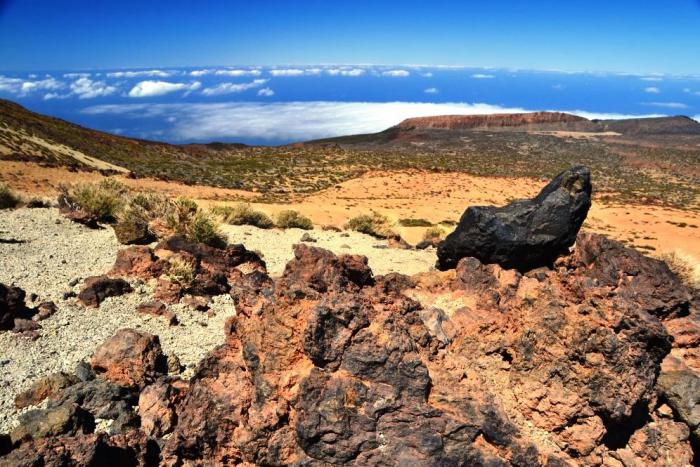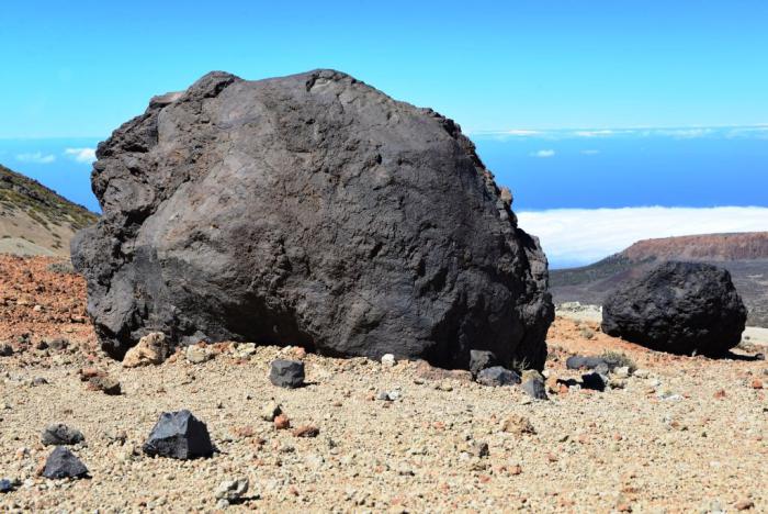 Черные тяжелые камни смотрятся инородным телом на светлой поверхности склонов, они и есть пришельцы. Потому как образовались во время взрывного извержения Тейде: под воздействием огромной силы из жерла вулкана выскочили «бомбы», которые устремились вниз по склону по языкам лавы, наматывая ее на себя, подобно снежному кому.