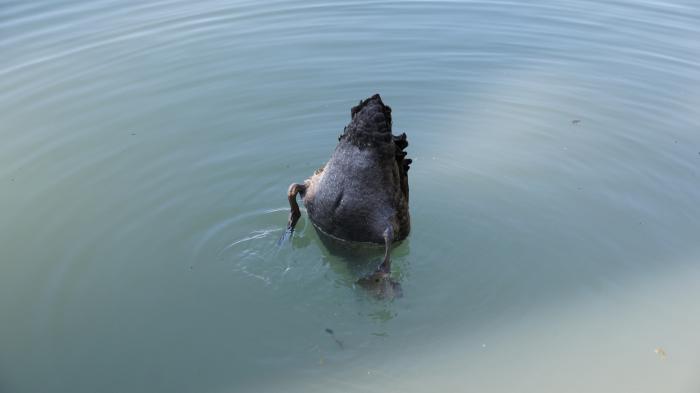 Черный лебедь никак не желал позировать для фотографии, всем своим видом показывая безразличие: