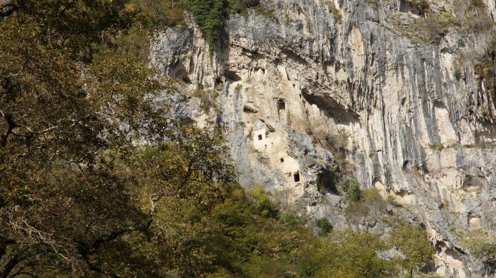 Добрались до истока реки — дальше прохода нет. Многие альпинисты, пытаясь добраться до скального монастыря, лишились жизни. Местные считают, что монастырь охраняют духи и не пускают никого дальше этого места.