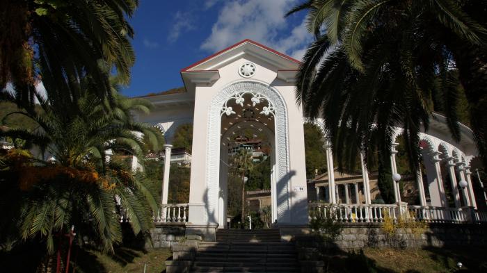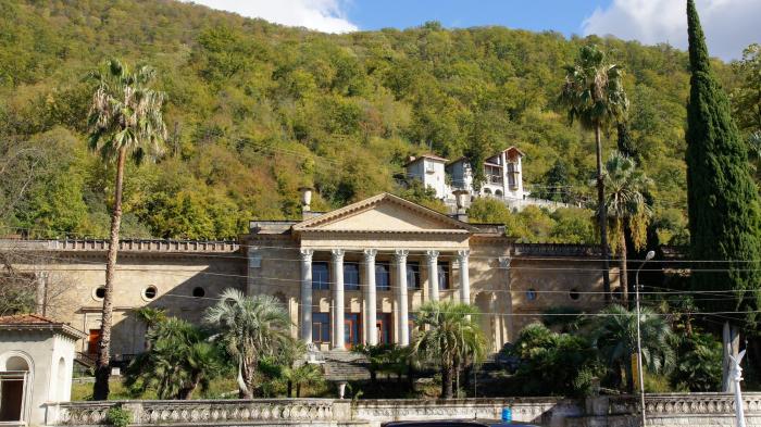 Потом направились в старый город, посмотрели на знаменитый ресторан «Гагрипш», являющийся старинным символом города. Фасад ресторана, собранный из норвежской сосны без единого гвоздя, был привезен в разобранном виде из Скандинавии еще в 1902 году. Он был куплен принцем Ольденбургским на парижской выставке вместе со зданием, предназначенным для строительства дворца принцессы Ольденбургской. Собственно это строительство и положило начало городу-курорту Гагры.