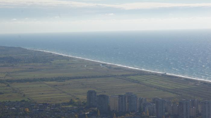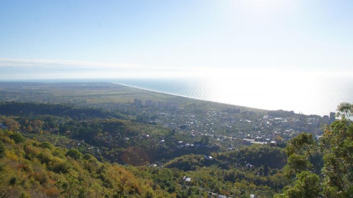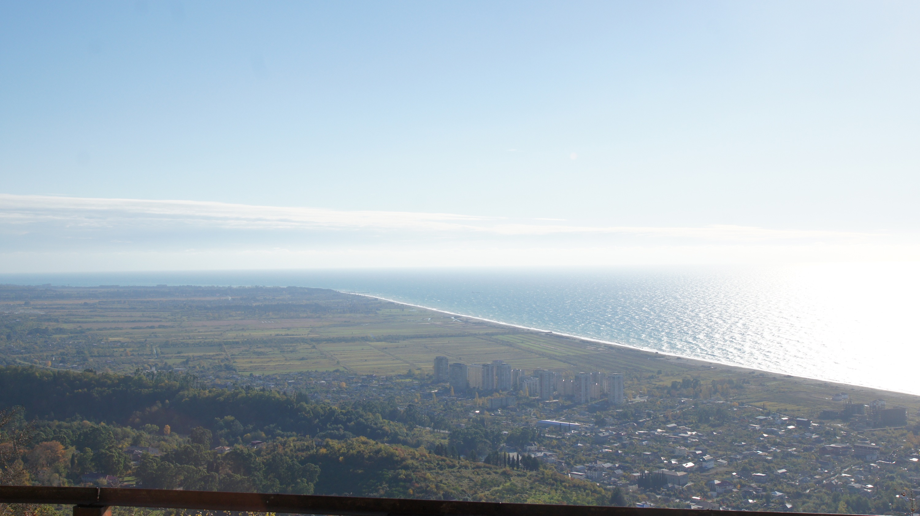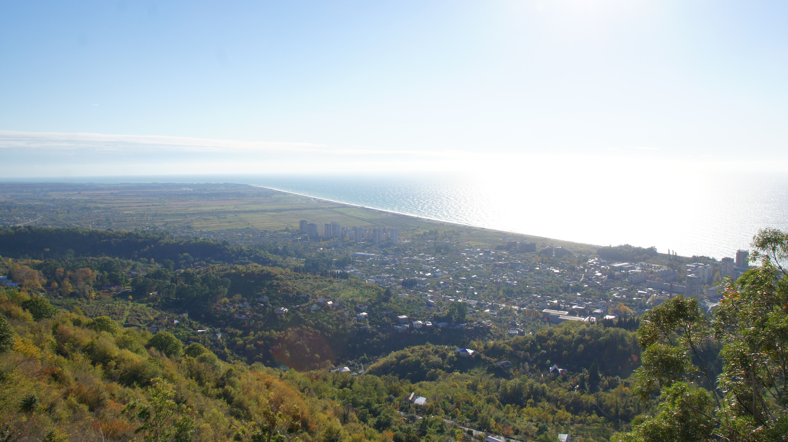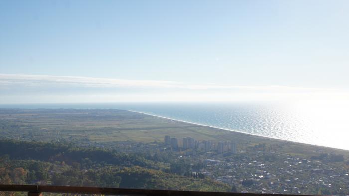 Все разбрелись «по интересам», кто-то решил просто погулять, кто-то посидеть на пляже, а мы с мужем решили напоследок «покорить» гору Мамдзышху, возвышающуюся над городом. Ее высота около 1873 м над уровнем моря. К вершине ведет серпантинная дорога длиной около 30 км. На разной высоте расположены смотровые площадки, с которых город смотрится как на ладони: