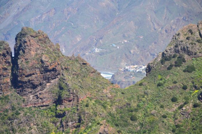 А вот справа – вид на ту часть острова, где последовательно расположены Таганана (но она скрывается за горой), Альмасига и крошечный Бенихо – их как раз прекрасно видно: