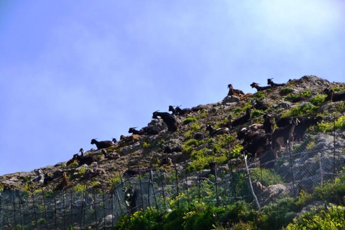 Извилистая тропка проложена мимо загонов с козами, с одним из пастухов почтенного возраста встретились и поздоровались.