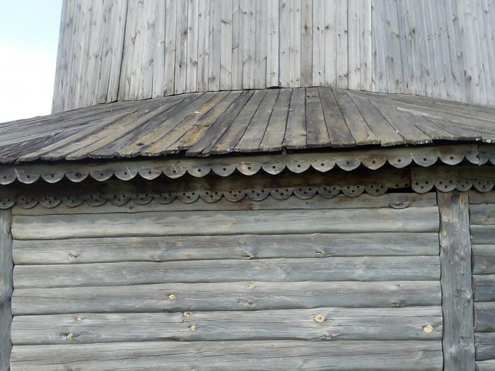 Шатер и основание мельницы украшены ажурной сквозной резьбой.