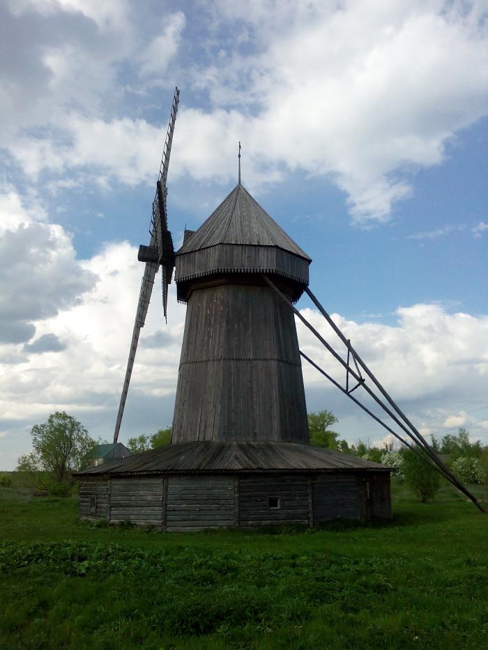 Подъезжая к Шацку, в селе Польное Конобеево внезапно, совсем рядом с трассой (М5), увидели большую ветряную мельницу!