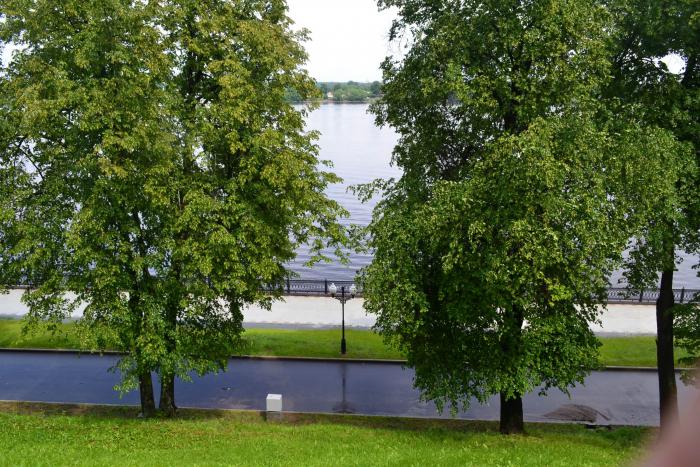 В промежутках между дождями мы пробрались на стрелку – слияние рек Волги и Которосли, где установлен памятник 1000-летию Ярославля.