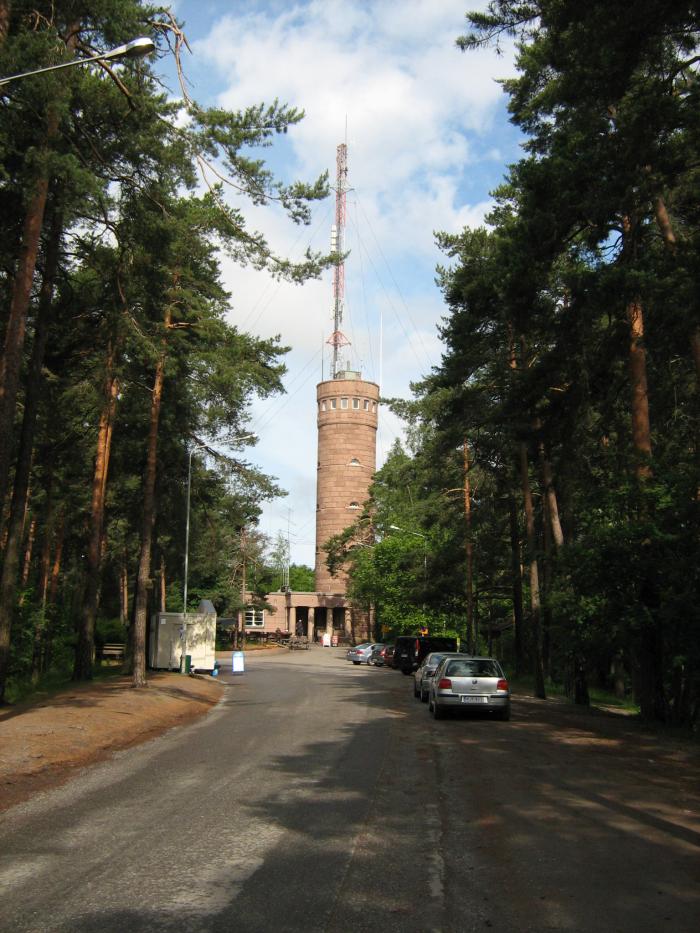 Знакомство с Тампере начали со смотровой башни, которая находится в парке Пююникки. Машину оставил на бесплатной парковке на улице Palomäentie, там где от этой улицы ответвляется улица Laiskolankuja. И мы пешком по зелёной аллее поднялись к башне.