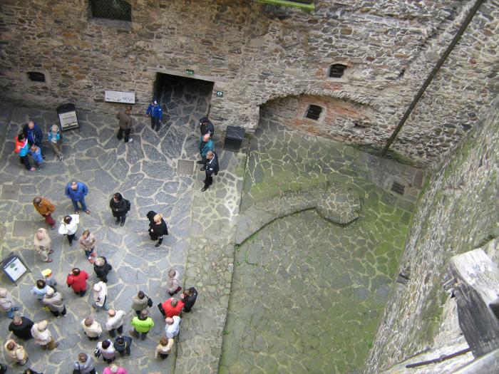 Экскурсия на русском языке начинается в 12-00. По времени мы на неё попасть не можем. Но и уехать, походив только по внутреннему двору никак нельзя. Выход напрашивается сам собой. Берём на кассе paper-гида на русском языке, цепляемся к англоязычной экскурсии (хоть чего-то понятно будет) и вперёд.
