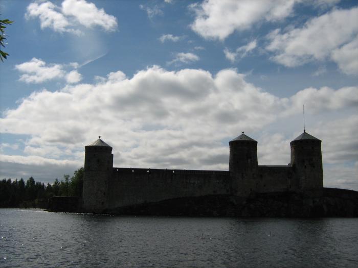 Названная в честь норвежского святого – короля Олафа, крепость была построена на небольшом острове в узловой точке Сайменской озёрной системы в 1457 году. Под защитой замка возникло поселение, в начале семнадцатого века ставшее городом – Савонлинна (шведское название Нюслотт – Новый замок).