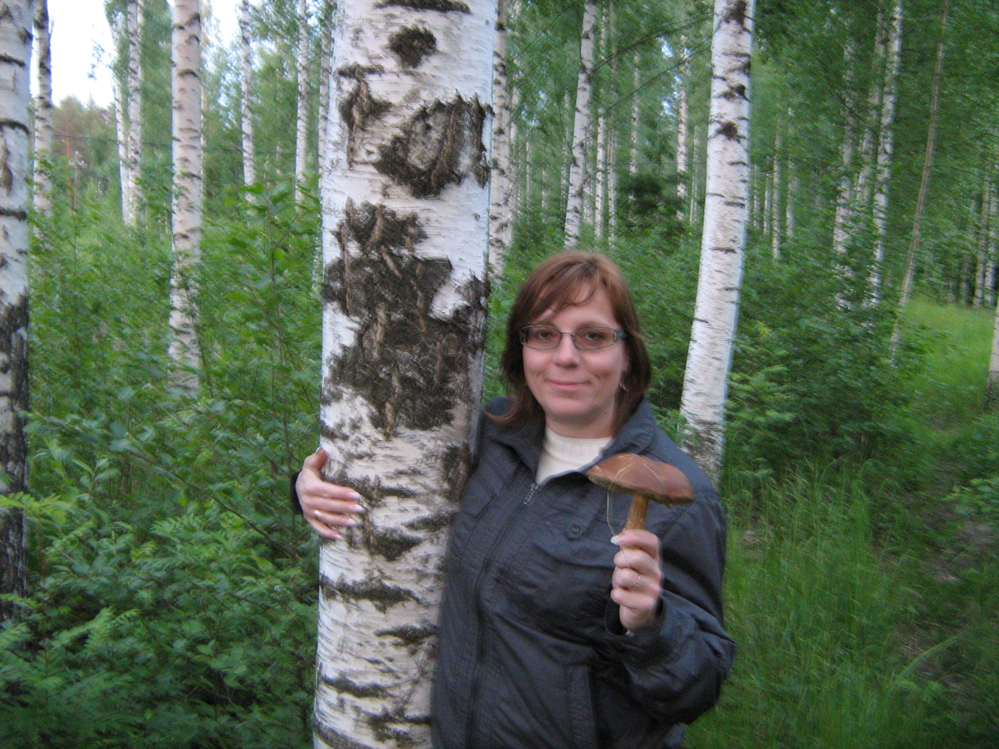 После ужина пошли прогуляться, и за домом нашли вот такой подберёзовик.