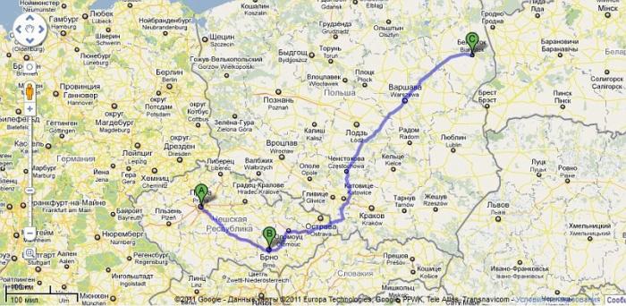 14 мая, в субботу, попрощались с Прагой и энергично покатились домой. Сервис Viamichelin от Праги до границы предложил два маршрута: короткий-более долгий через Вроцлав и длинный, но меньший на час с лишним — через Брно-Катовицы. Я выбрал второй (11 часов планового времени езды) с финишем в Белостоке.