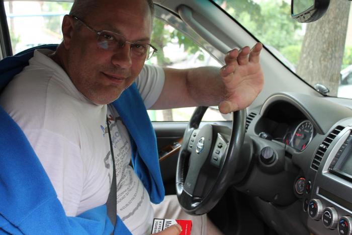 17.06.2014 г. Утром мы свеженькие и бодрые, собирались традиционно погулять по центру города, но наши планы «сломала» грандиозная автомобильная пробка. Мы промаялись в ней какое-то время и уже не стали соваться в центр, ведь впереди — около 1000 км. до Омска. На выезде из города помыли машину на автомойке «Енисей», хозяином которой оказался очень колоритный «байкер» возраста «далеко за...». Пофоткались.