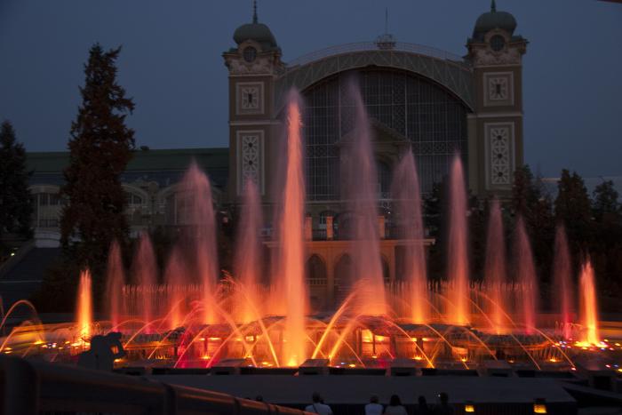 Из ресторана не вышли, а выкатились :)) К фонтанам подошли на час раньше. Оказалось, что начало первого представления в 20.00, а не в 19, как мы думали. Действо разворачивалось под музыку Yani на фоне огромного промышленного павильона в стиле ар-нуво. Можно фотографировать и снимать на видео, но только без использования штатива или монопода, о чем нас деликатно предупредили, увидев монопод. Зрелище завораживает, всем очень понравилось. Спасибо знаменитому чешскому инженеру и изобретателю со смешной фамилией Кржижик, который первый в мире изобрел и построил их аж в 1891 г.Цена входного билета — 220 крон. После представления можно приобрести DVD-диск с записью.