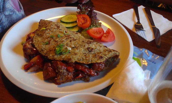 Очень вкусно поели в заведении «На Коварне» в котором сидела компания чехов и что-то оживленно обсуждали. Ресторанчик находится прямо на пути к Поющим фонтанам, мимо не пройдете. Заказали три салата: два«Цезаря» и еще какой-то, жареный сыр в кляре, «дьявольский драник» (очень вкусно, но остро), два мясных блюда с грибами. Еще пиво и напитки по интересам (имбирный Джинджер. Общий счет на пятерых около 1000 крон.
