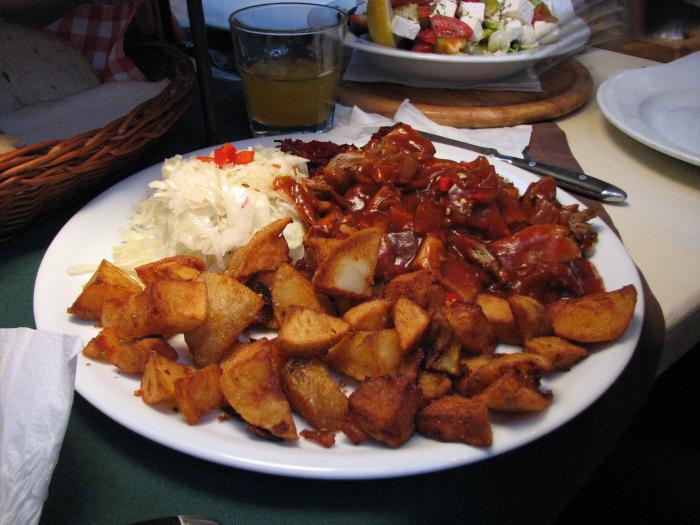 Все очень вкусно, за исключением кровяных колбасок. Мы с Ирой их есть не смогли, наверное это на очень большого любителя. Все порции были нереально огромными. Еда вкусная, только надо приходить действительно голодными. Отличное место для желающих не просто поесть, а устроить настоящий пир! В конце трапезы принесли вкусную вишневую наливку от заведения.