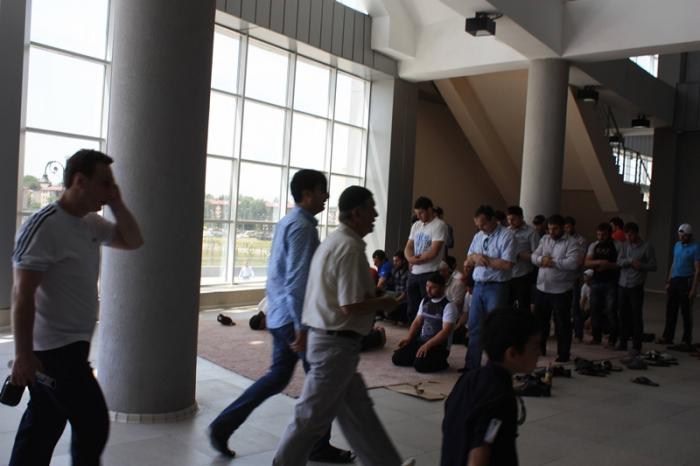 Вот мы и на стадионе. Под трибунами идёт молитва.