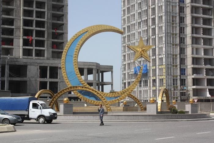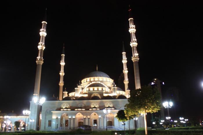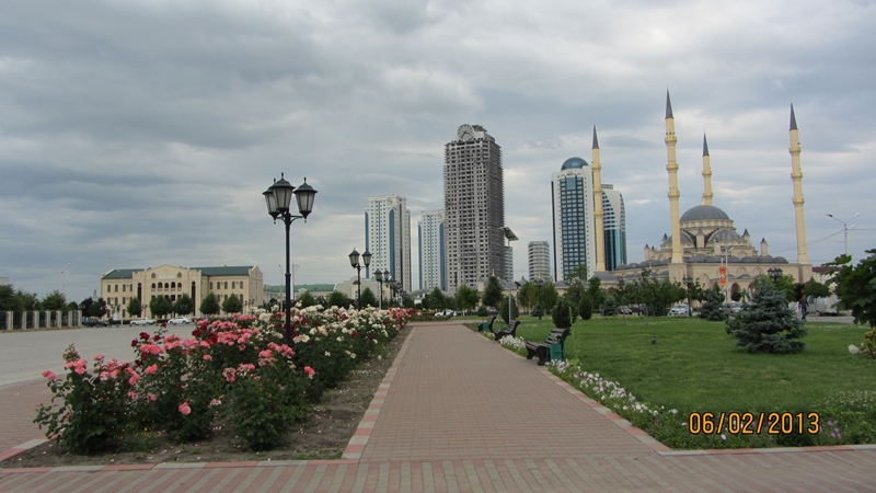 Так продвигаясь от дома к дому фотографируя всё что светиться и движется мы оказываемся на центральной площади, где расположена мечеть «Сердце Чечни».