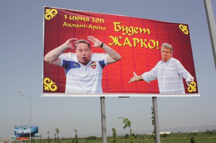 Прокатившись по Аргуну, берём курс на Грозный. Справа и слева нас обгоняют машины с дагестанскими номерами. Из них торчат руки, головы болельщиков «Анжи». Флаги, шарфы, громкие сигналы и визг колёс на светофорах создают впечатление, что толпа кочевников несётся на штурм города.