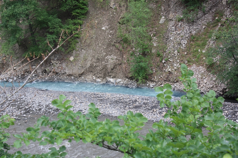 Дорога ужасная, потому что идёт ремонт, но нам не привыкать. Посмотрев издалека на башни оказываемся в небольшом селении. Свернув на какую-то улочку, паркуем машину. Здесь стоит небольшой блок-пост, который охраняет небольшой мостик через реку Аргун. Со слов сотрудников здесь иногда бывают переходы боевиков из лесных горных районов к дороге на Итум-Кале. В этом месте есть природная чудо-система водопадов. Чтобы посмотреть на них надо по руслу ручья подниматься вверх против течения, преодолевая каменные пороги. Метров через двести оказываешься перед пещерой, которая расположена на высоте нескольких метров. Из неё падает вода. Это один из водопадов. Рядом лестница. Со слов местных жителей, если подняться по ней в пещеру, то можно выйти к следующему водопаду. К сожалению, совершить это нам не удалось, потому что стемнело. Решили осмотреть эту достопримечательность в следующий раз.