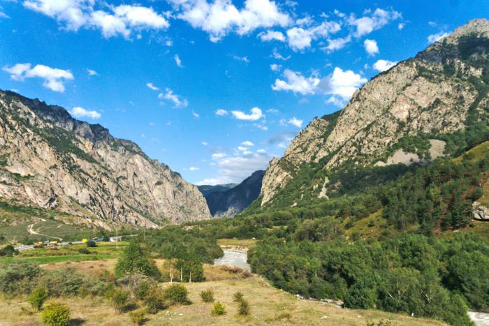 Дорога по ущелью безумно красива. За каждым поворотом горы становятся выше.