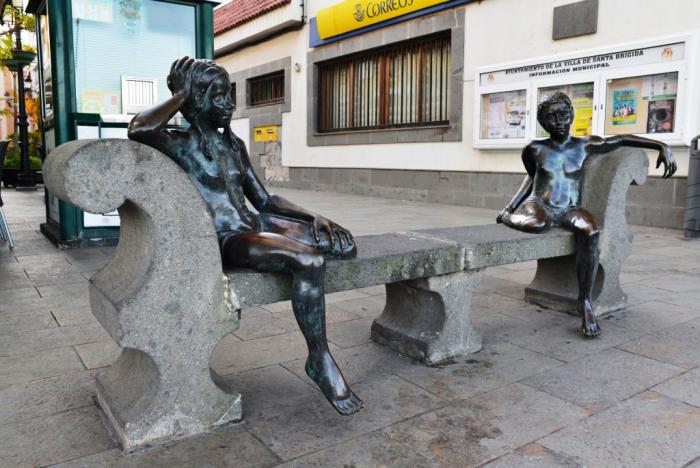 Жители в традиционных одеждах сидят на скамейках в тени деревьев, занимаются привычными делами и выполняют свою главную задачу: привносят приятное разнообразие в туристическую жизнь. Чемпионом по количеству городской скульптуры является Агюимес, но туда мы отправимся, когда примемся колесить вдоль восточного побережья Гран-Канарии.