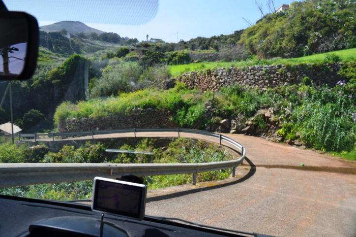 Наш Сусанин водил нас лихо, особенно после заката. Один раз повел по дороге, на карте обозначенной белым цветом, так в отличие от навигатора и местной карты дорога в реальности в определенном месте закончилась! Сменилась грунтовкой и затерялась в очередной барранке. Или же заставлял нас срезать через огороды банановые, но здесь надо было показать характер и доказать, кто в доме хозяин.