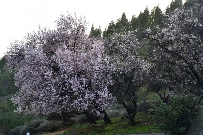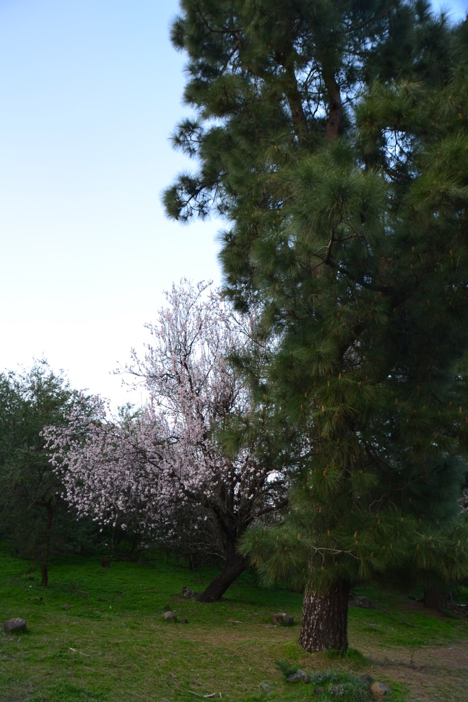 Незаметно меняется окружающий пейзаж: на смену кактусам и лавовой породе приходят сосны и цветущие фруктовые деревья – вперемешку.