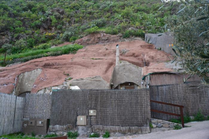 Дорога заканчивается комплексом из нескольких крайне своеобразных сооружений – это пещерные дома. Они и сейчас используются в качестве жилых помещений, в чем мы несколько раз на острове имели возможность убедиться.