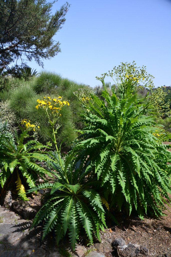 Еще одно необычное растение – на этот раз канарский эндемик — это древовидный одуванчик. Его победоносные стебли с мощной охапкой листьев повсеместно встречаются на Тенерифе, Гран-Канарии и Гомере (может, они есть и на других островах – пока не видели), но здесь это абсолютные монстры какие-то!