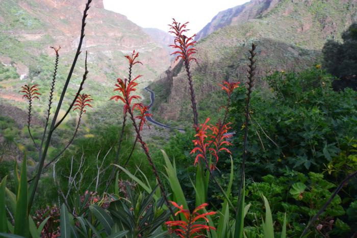 Не знаю, какие птицы опыляют этого австралийского гостя на Канарах (один из стендов вдоль дороги рассказывает о богатом орнитологическом мире), но чувствует он себя в местном ботаническом саду неплохо.