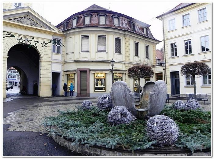 К следующему сайту мы намеревались направиться с внешней стороны старого города, но тут весьма некстати зарядил мерзкий дождик. Так что, получив эстетическое удовольствие от того, как в Ансбахе декорируют на зиму фонтаны,