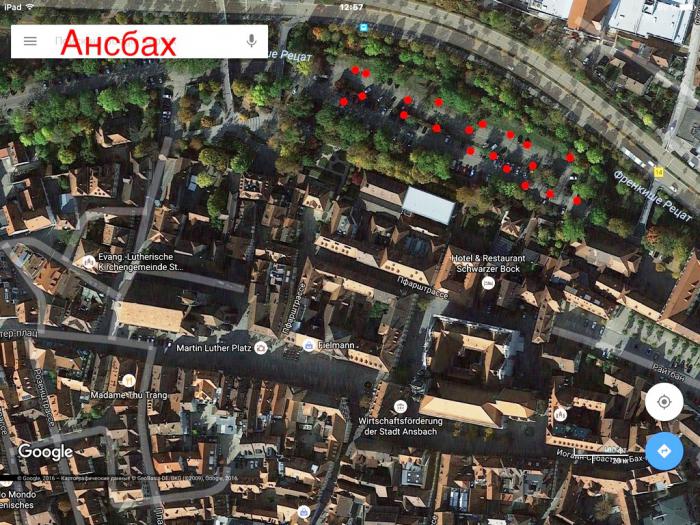 Ансбах (Ansbach) (по городу гуляли 2 часа 10 минут) – столице Средней Франконии. Выбор этот не был случайным. Дело в том, что мы с Машей давно лелеяли мечту оказаться на каком-нибудь Рождественском базаре. Увы, но работа подобных ярмарок крайне редко длится вплоть до последних предрождественских дней. С Ансбахом нам крупно повезло, поскольку он оказался единственным городом на нашем пути, где