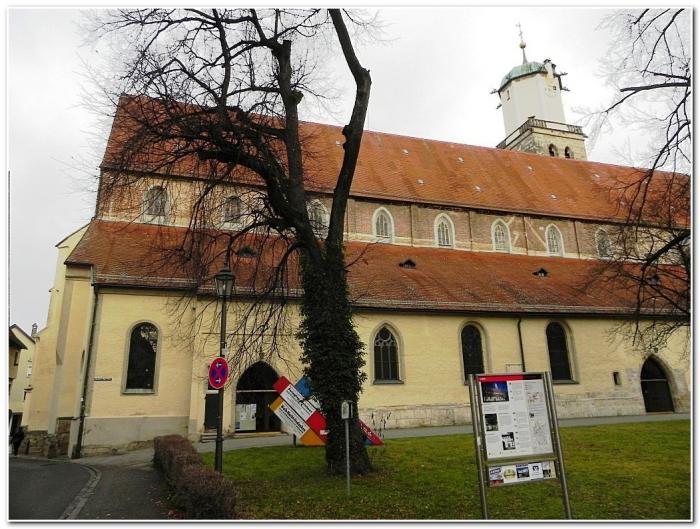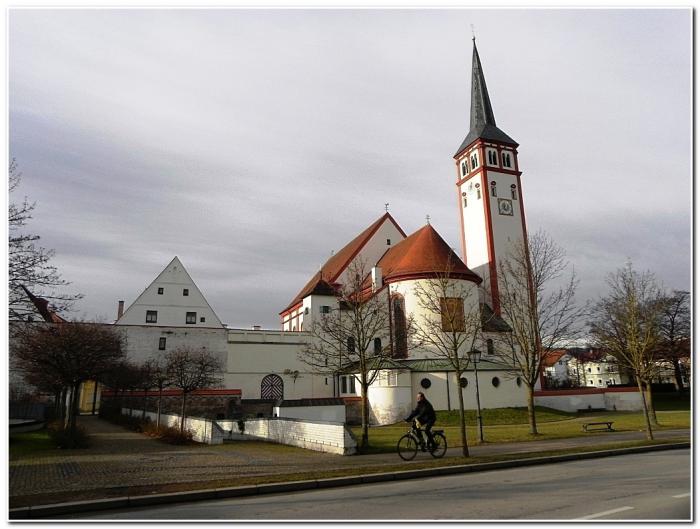 Не обошли мы вниманием церкви Меммингена, две из которых находятся в непосредственной близости от Рынка. Перво-наперво взор притягивает элегантный белый храм монастыря Рыцарей Креста, колокольня которого заслуженно является важным атрибутом силуэта городского центра.