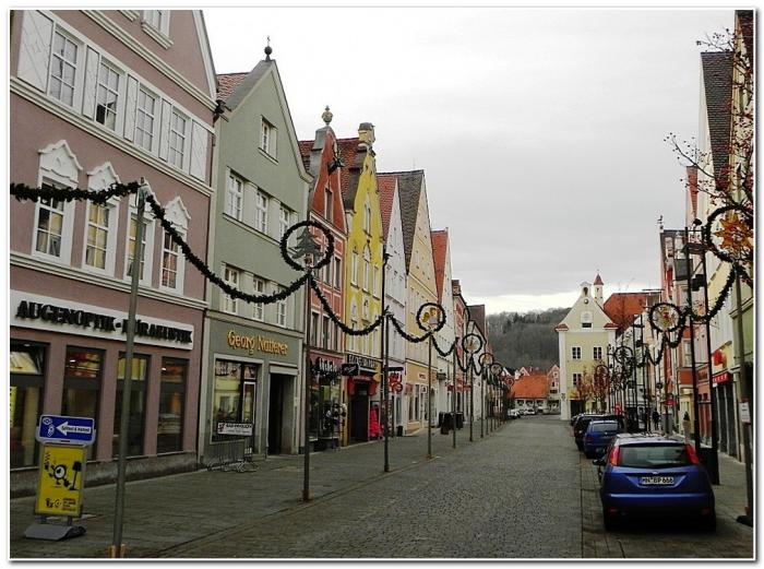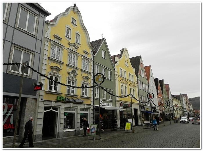 Ряд симпатичных домиков, выстроившихся вдоль главной городской артерии Максимилианштрассе, многие из которых отличаются весьма замысловатыми фронтонами, устремляется в бесконечность. Традиционно в них размещаются предприятия сферы услуг, общепита и магазины.