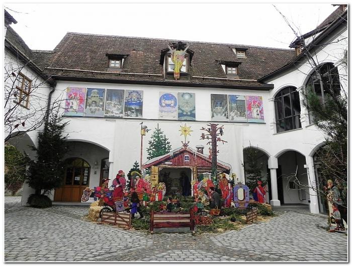 Двери во внутренний двор сооружения были открыты, поэтому мы туда, конечно же, заглянули, где обнаружили довольно любопытный вариант Рождественского вертепа.