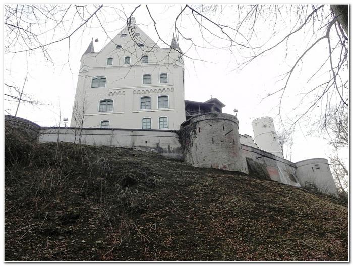 Даже зимой мне не удалось найти подходящий просвет между деревьями, чтобы полюбоваться видами Миндельхайма с высоты замка. Видимо, поэтому Миндельбург не просматривается и со стороны города.