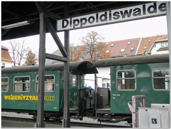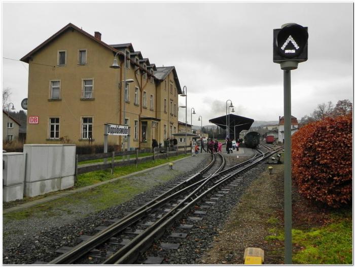 Дело в том, что катастрофическое наводнение 2002 года практически полностью разрушило эту дорогу. На момент нашей поездки (12.2014) движение удалось восстановить лишь на участке Фрайталь – Диппольдисвальде. Ещё 11 километров пути до станции Курорт Кипсдорф вновь ввели в эксплуатацию только в июле 2017 года.